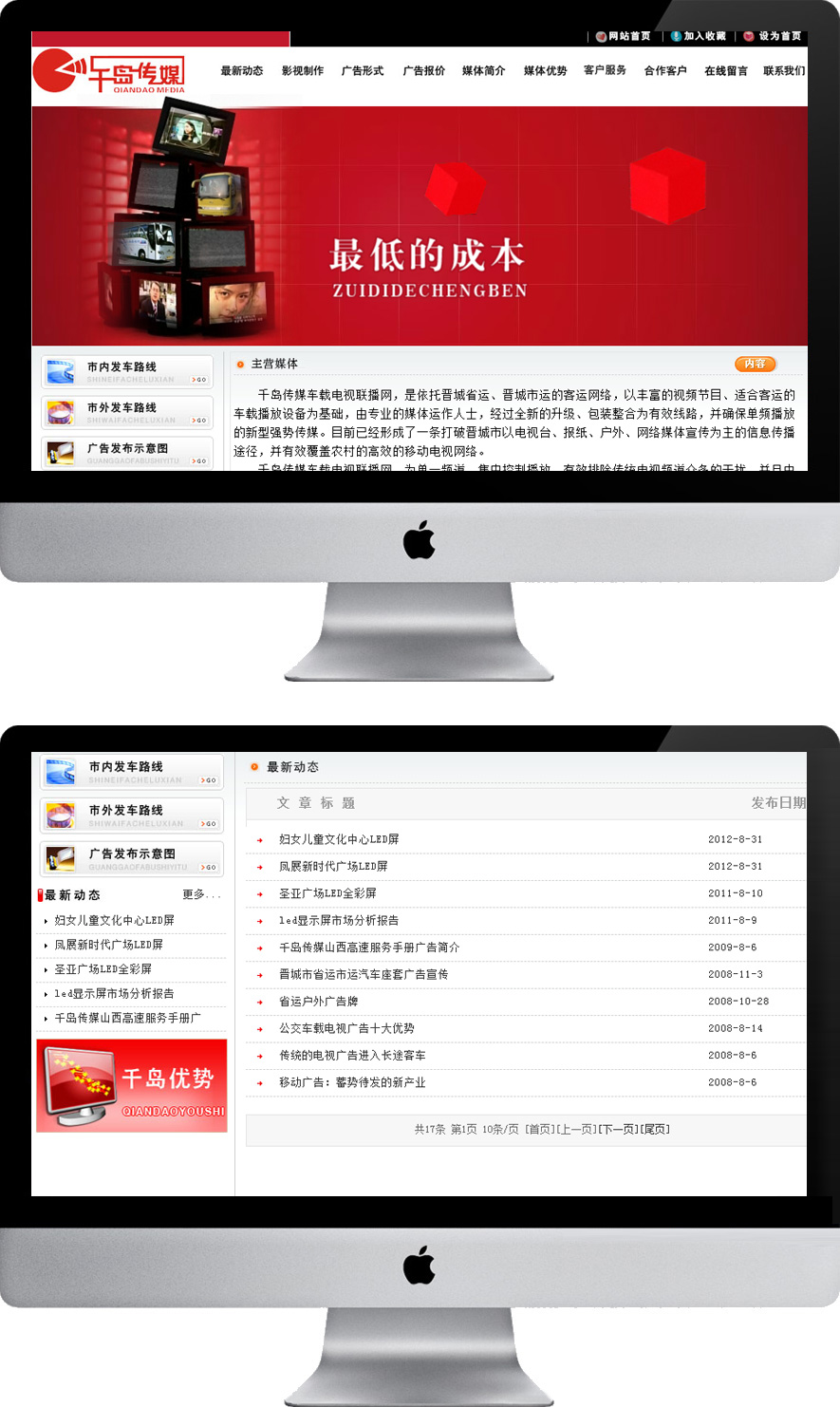 千島傳媒車載電視聯(lián)播網(wǎng),是依托晉城省運(yùn)、晉城市運(yùn)的客運(yùn)網(wǎng)絡(luò),以豐富的視頻節(jié)目、適合客運(yùn)的車載播放設(shè)備為基礎(chǔ),由專業(yè)的媒體運(yùn)作人士,經(jīng)過全新的升級(jí)、包裝整合為有效線路,并確保單頻播放的新型強(qiáng)勢(shì)傳媒。目前已經(jīng)形成了一條打破晉城市以電視臺(tái)、報(bào)紙、戶外、網(wǎng)絡(luò)媒體宣傳為主的信息傳播途徑,并有效覆蓋農(nóng)村的高效的移動(dòng)電視網(wǎng)絡(luò)。