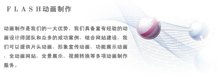 全動畫網(wǎng)站對于我們的動畫制作團隊來說是最樂于接受的挑戰(zhàn)。它要求完美結(jié)合目的,創(chuàng)意,設(shè)計,效果,展示和互動。對于瀏覽者來說這是一種全新的用戶體驗。全動畫網(wǎng)站可以實現(xiàn)很多普通網(wǎng)頁無法實現(xiàn)的效果,提供豐富的網(wǎng)絡(luò)應(yīng)用。我們團隊在這方面也積累了豐富的成功實踐。
